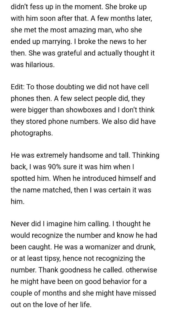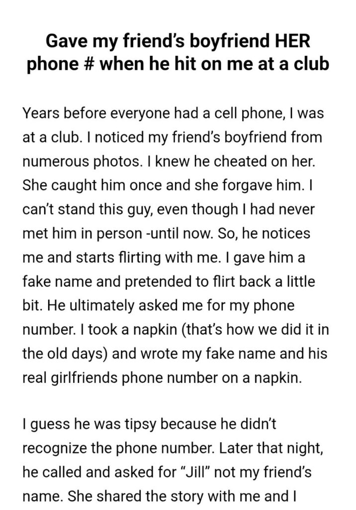 The girlfriend obviously shared this bizarre “wrong number” story with the OP the next day, not realizing she was talking to the architect of his destruction. The OP managed to keep her mouth shut, which was probably the hardest part of this whole ordeal. Thankfully, the phone call was the final straw, and the girlfriend finally saw the light and dumped the cheater soon after.